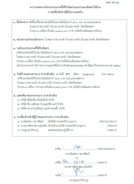 เผยแพร่ราคากลาง เครื่องเอกซเรย์ทั่วไปขนาดไม่น้อยกว่า 500 mA. แบบแขวนเพดาน โรงพยาบาลบางกล่ำ ตำบลบางกล่ำ อำเภอบางกล่ำ จังหวัดสงขลา จำนวน 1 เครื่อง