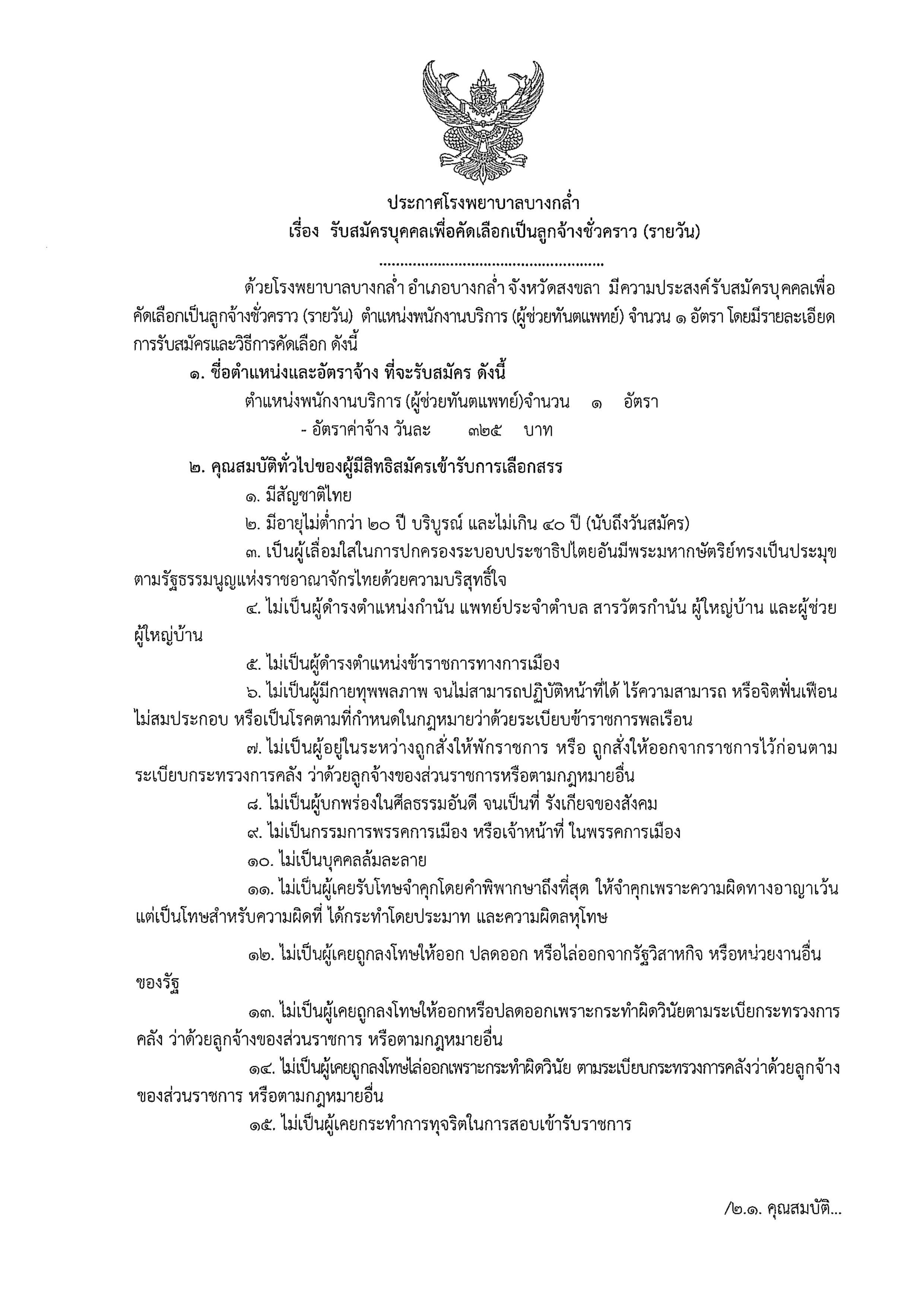ประกาศรายชื่อผู้มีสิทธิสอบคัดเลือกบุคคลเป็นลูกจักงชั่วคราว (รายวัน) ตำแหน่งพนักงานบริการ (ทำความสะอาด) และ ตำแหน่งพนักงานบริการ (ผู้ช่วยทันตแพทย์)